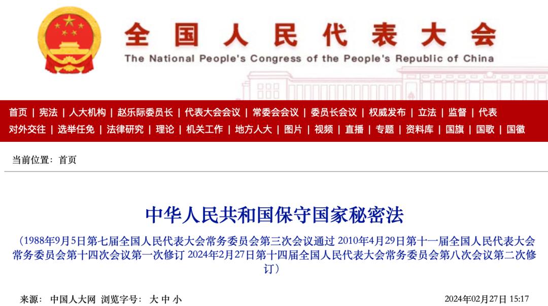 中华人民共和国保守国家秘密法,2024年5月1日起施行! 轻触阅读原文