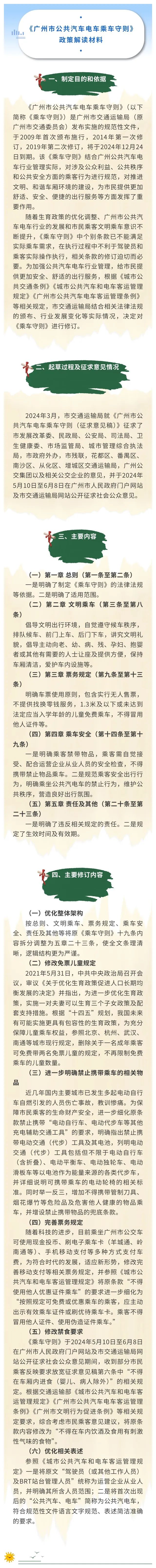 《广州市公共汽车电车乘车守则》(以下简称《乘车守则》)是广州市交通运输局(原广州市交通委员会)发布实施的规范性文件,于2009年首次颁布施行,2014年第一次修订,2019年第二次修订,将于2024年12月24日到期。该《乘车守则》结合广州公共汽车电车行业管理实际,对涉及公众利益、公共秩序和公共安全方面的乘客行为进行规范,对推进文明、和谐车厢环境的建设,为市民提供更加舒适、安全、便捷的出行服务等方面发挥了重要作用。