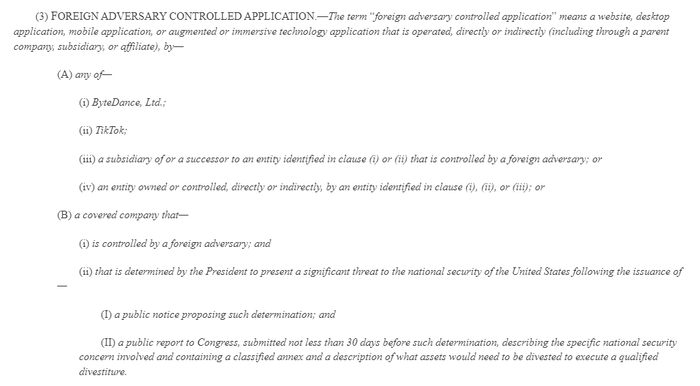 此前,当地时间20日,美国众议院以360-58的压倒性多数通过这一法案,其中包括强制字节跳动剥离美国TikTok否则将面临禁令的要求。新法案通过调整期限至不超过270天,并赋予总统90天的延期权力,把字节跳动出售TikTok的最长期限延长到大约一年。