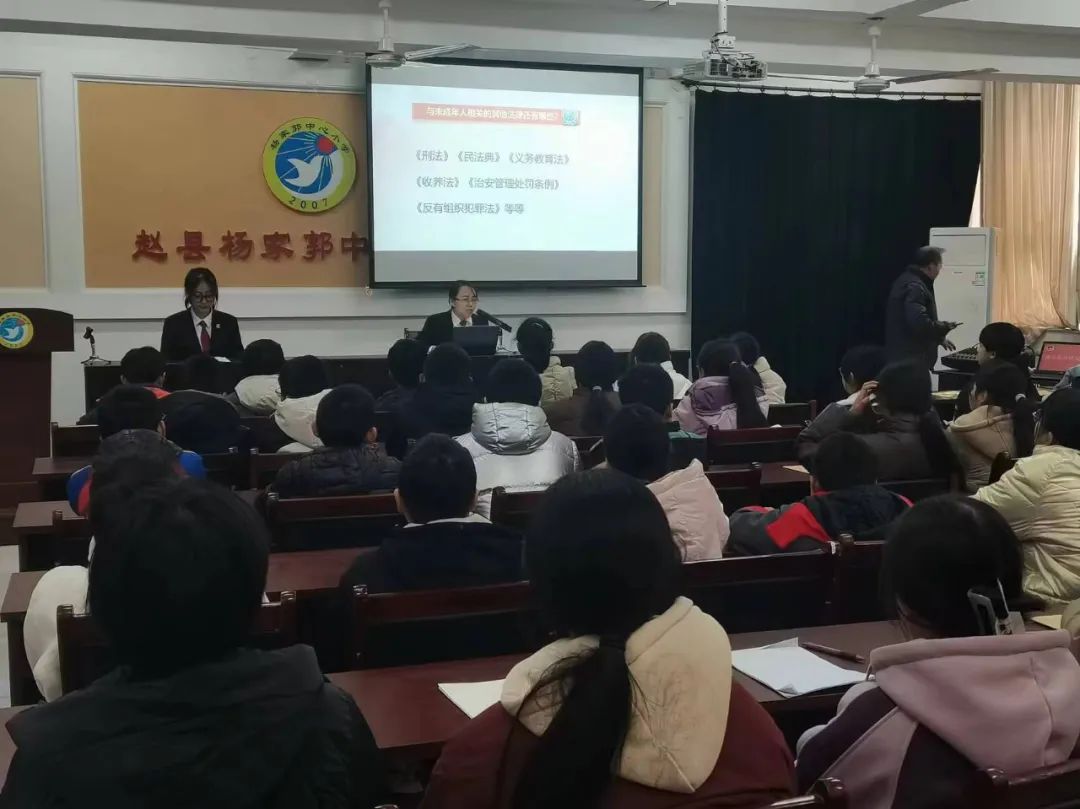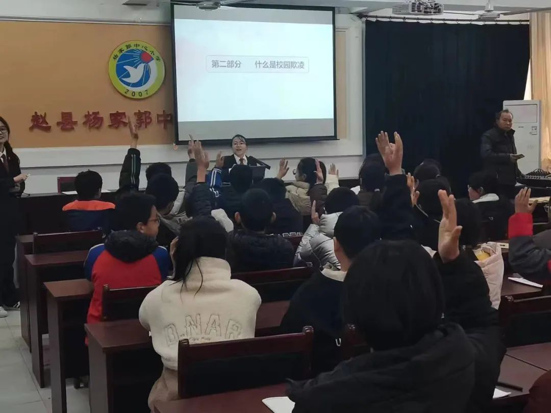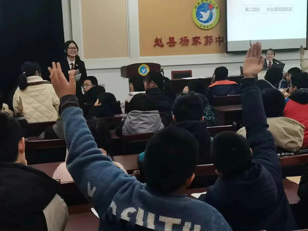 春季开学伊始,为深入推进“三下三进三联动”诉源治理工作体系,进一步提高青少年法治观念,共建和谐校园,3月7日,赵县人民法院法官张笑曲,法官助理张硕、刘林赛,先后前往包联学校杨家郭中心小学、双庙中心小学、前大章中心小学、韩村中心小学,开展“与法同行、保‘未’成长”普法宣讲,此次宣讲以“防范校园欺凌 护航青春成长”为主题,给师生们带来了生动精彩的“开学第一课”。
