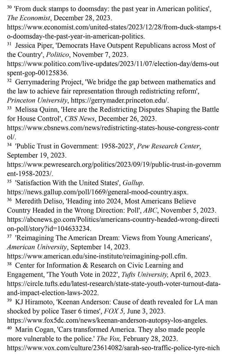 美国枪支暴力造成惨痛生命代价,政党恶斗导致难以达成控枪共识。政府滥用权力监控公民隐私,警察暴力愈演愈烈,警察执法问责制度形同虚设。政治极化持续加剧,选举操弄肆意横行,政府公信力继续下跌。