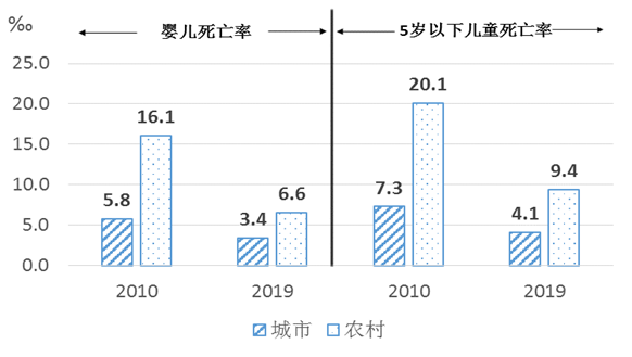图10 2010、2019年分城乡婴儿死亡率和5岁以下儿童死亡率