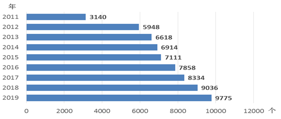 3.残疾儿童专业康复服务能力稳步提高。2019年,我国推出《0~6岁残疾儿童基本康复服务目录(2019年版)》,进一步提升了残疾儿童基本康复服务供给能力和保障水平。截至2019年底,全国开展残疾儿童康复的残疾人康复机构9775个,比上年增加739个,增长8.2%(见图6)。全国共有18.1万名0—6岁残疾儿童接受了基本康复服务,比上年增加2.4万人,增长15.4%,占接受基本康复服务残疾人的比重为1.74%,比上年提高0.28个百分点。