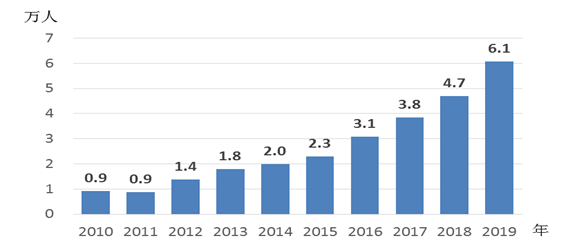 3.儿童法律援助能力进一步提升。我国在保护弱势群体、构建社会主义和谐社会的过程中,积极开展对未成年人的法律援助工作。2019年,全国未成年人得到法律机构援助共计13.8万人次,占受援人数的6.9%,比2010年增加5万人次,增长57.1%。县级以上妇联组织为妇女儿童提供信访、热线咨询等服务超过20万件次。