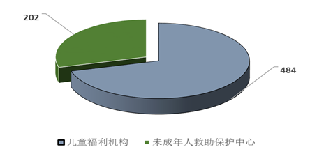 1.儿童福利和救助保护机构数量稳中有升。2019年,民政部、教育部等10部门联合印发《关于进一步健全农村留守儿童和困境儿童关爱服务体系的意见》,明确了未成年人救助保护中心和儿童福利机构的职能定位和区域布局,有力推动了我国儿童福利保护工作的开展。截至2019年底,全国共有儿童福利和救助保护机构686个(见图5),比上年增加35个;机构共有床位9.9万张。其中,儿童福利机构484个,床位9万张;未成年人救助保护中心202个,床位0.8万张,全年共救助流浪乞讨未成年人1.8万人次。