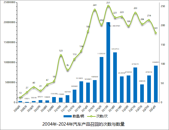 二十载光阴荏苒,二十载风雨兼程。2004年10月1日,《缺陷汽车产品召回管理规定》正式施行,标志着我国产品召回制度正式建立,全面开启产品召回有法可依、有章可循的监管新局面。截至2024年10月1日,我国施行产品召回制度20周年。这20年来,召回制度发展如何?取得了哪些成果?发挥了哪些作用?让我们通过数据来一一回顾。