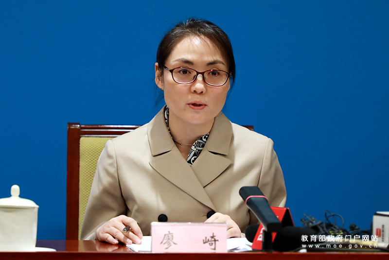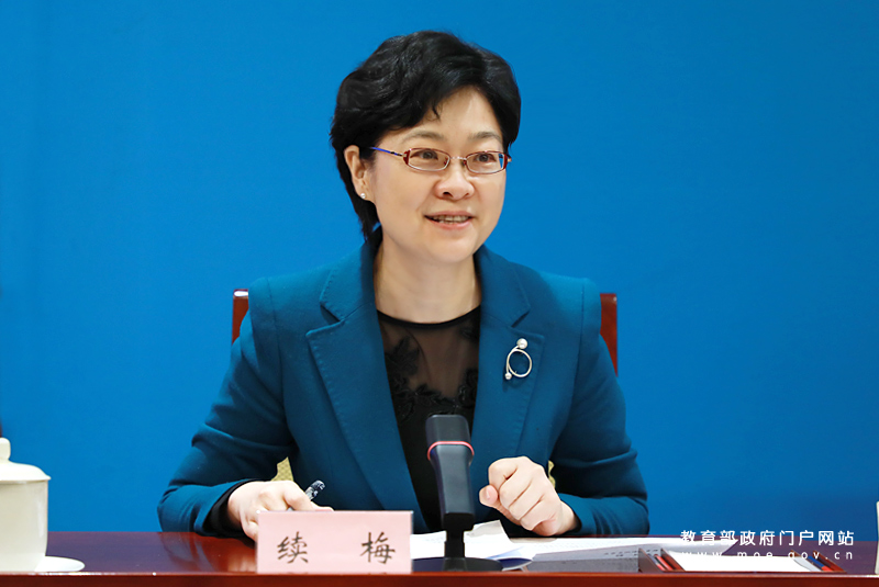 教育部新闻办主任、新闻发言人续梅主持发布会。(中国教育报记者 单艺伟/摄)
