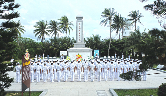 西沙某水警区琛航岛官兵祭奠海战烈士。熊祺/摄