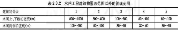 (2)为保证工程安全,加固维修、美化环境等需要,在水闸工程建筑物覆盖范围以外划出一定范围。其值可参照《水闸工程管理设计规范》表2.0.2确定。