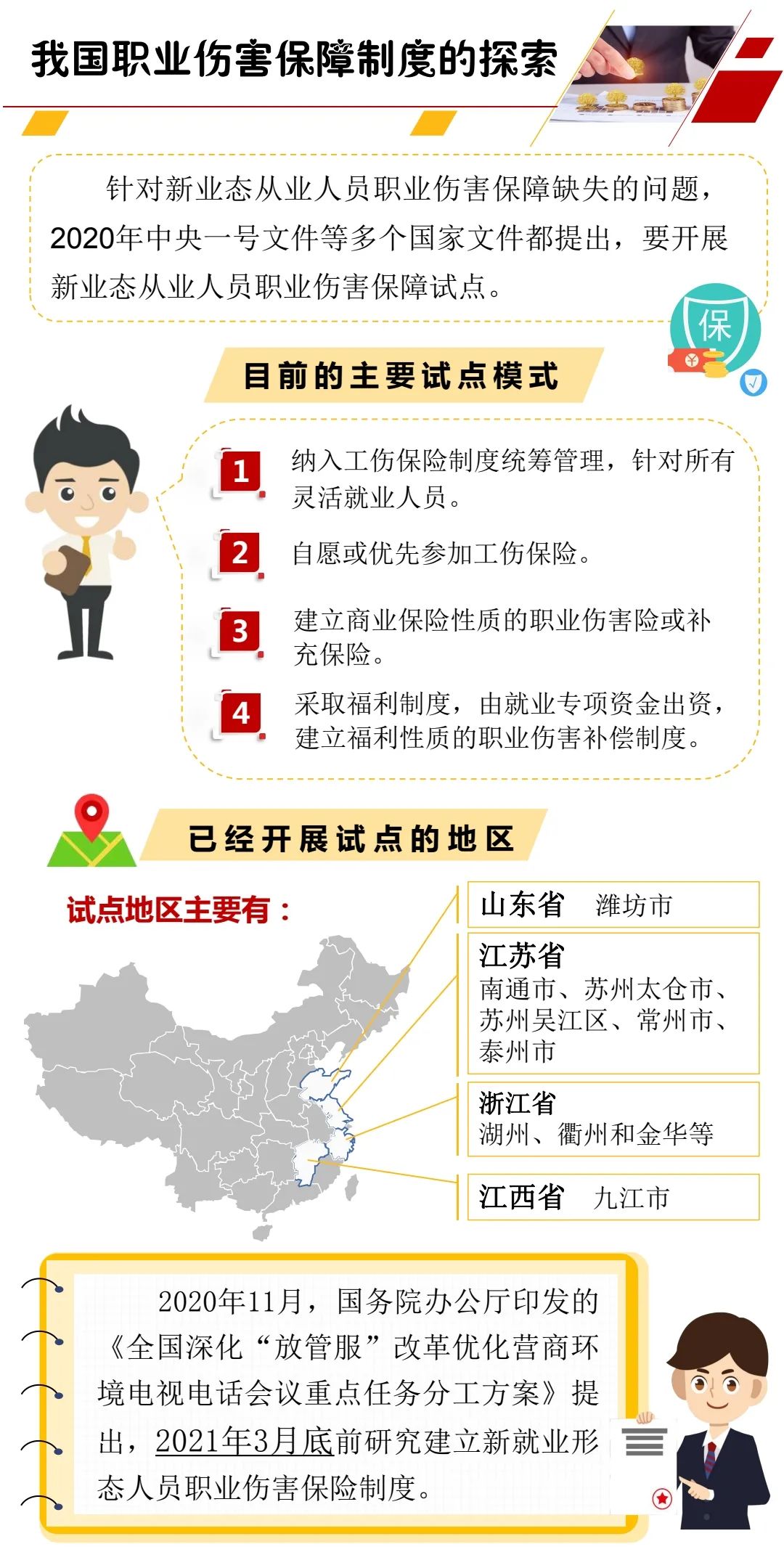 很多专家认为,在暂时无法实现构建新业态从业者完整社保制度的前提下,有必要先在工伤保险制度上进行突破性尝试,这个问题已经提上国家议事日程,不少地方开始职业伤害保障的探索。