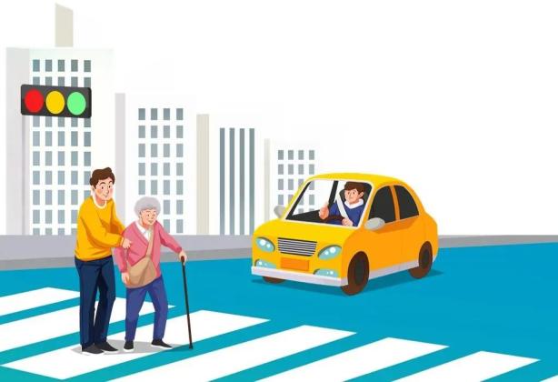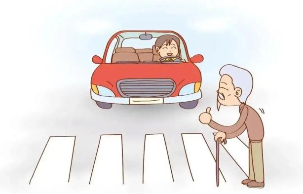 遇到老年人过马路时要减速让行,尽量避免使用远光灯;发现老年人结伴而行的,要提前礼让,不可突然鸣笛。