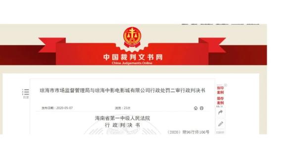 上诉人琼海市市场监督管理局(以下简称琼海市市监局)因与被上诉人琼海中影电影城有限公司(以下简称琼海中影公司)工商行政处罚一案,不服琼海市人民法院(2019)琼9002行初36号行政判决,向本院提起上诉。本院于2020年4月8日立案受理后,依法组成合议庭审理了本案。本案现已审理终结。