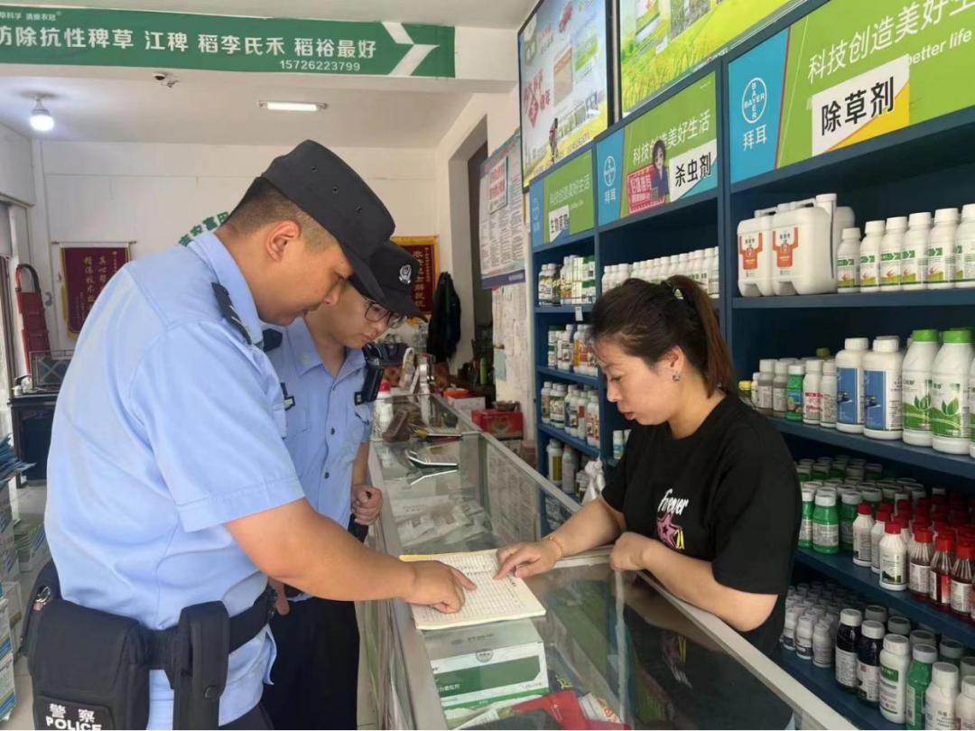 “一旦发现有经营者出售假冒伪劣产品,应及时向公安、市场监管等部门举报。”民警在检查农资商店后,向商户作出提示。