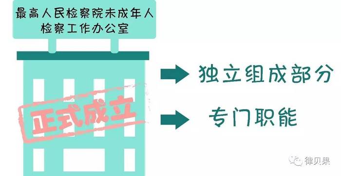 2015年12月23日,最高人民检察院公布,最高人民检察院未成年人检察工作办公室正式成立。这意味着,未成年人检察工作正式成为了检察业务的一个独立组成部分,也标志着未成年人保护正式成为了检察机关的一项专门职能。