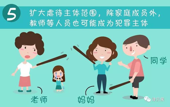 5) 扩大虐待主体范围,除家庭成员外,教师等人员也可能成为犯罪主体,