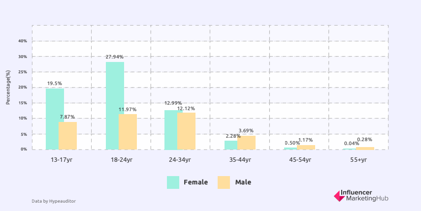 2022年度网红市场报告:美国TikTok用户多为年轻女性