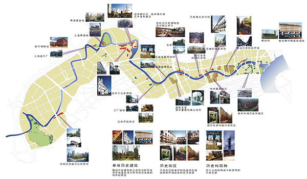后来,我急着赶回去,因为苏州河两岸的整治工作是市政府最重要和急迫的工作,项目需要很快被批准,所以必须及时地提出修改方案后上报。我回去以后,在地形图上把两幢房子划出来,标注为“保留历史建筑”,然后报给局领导。局领导在下班前叫住我,他说其实这个方案市长已经看过了,为什么要在规划的绿地上保留这两幢旧仓库?我详细汇报了现场踏勘的情况,提出当时的建议是,保留这两座有历史的仓库作为文化设施,一个公园可以有建筑作为它的文化设施,文化和绿化是不矛盾的......后来局领导向市领导汇报后批准了我的建议。这件事给了我很大的鼓励,我就和规划局、文物局的一些热爱遗产保护的好友一起,利用周末时间跑遍了苏州河沿岸,开出了100多处仓库和厂房的名单,并且把他们在规划上标注出来,列为规划中保留的历史建筑,可以改造利用但不得拆除。苏州河景观规划在2000年获得市政府的批准,它让我想到,也许苏州河有一天也会像纽约的SOHO或是巴黎的左岸一样,成为中国创意产业的聚集地带。