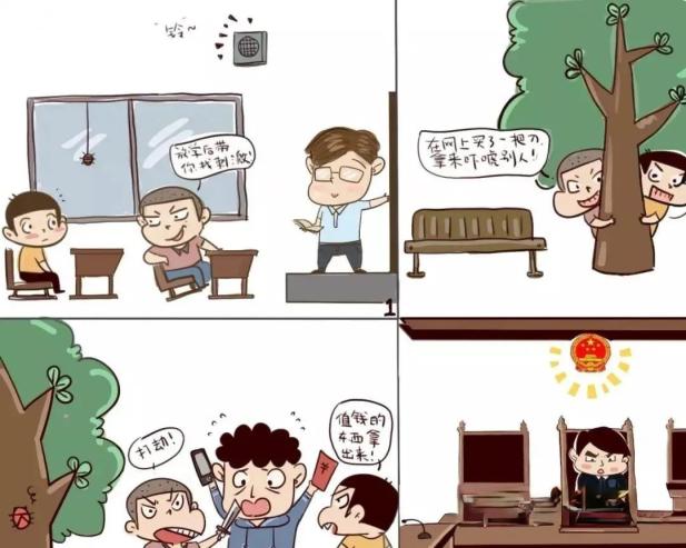 法律不是儿戏,犯罪岂是游戏!今天,让我们大家通过一幅幅漫画,来了解未成年人身边都会出现哪些常见违法犯罪行为,从而学会用法律保护自己免受犯罪分子的侵害,做一名尊法、学法、懂法、守法的新时代好少年。
