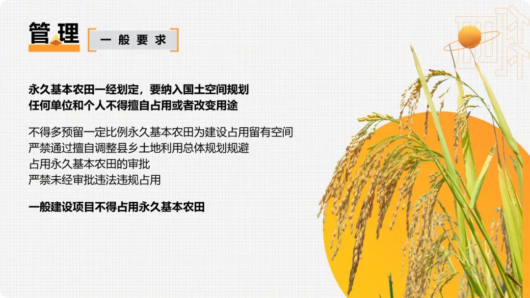 永久基本农田一经划定,要纳入国土空间规划,任何单位和个人不得擅自占用或者改变用途,不得多预留一定比例永久基本农田为建设占用留有空间,严禁通过擅自调整县乡土地利用总体规划规避占用永久基本农田的审批,严禁未经审批违法违规占用。一般建设项目不得占用永久基本农田。