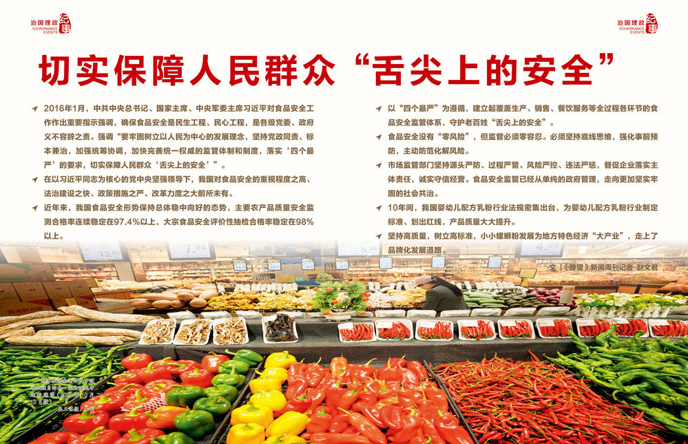 在各地区、各部门和社会各界的共同努力下,我国食品安全法治体系更加健全完善,监管执法更加严格规范,责任落实更加精准有力,牢牢守住不发生重大食品安全事故的底线。我国对食品安全保障的能力已成为国家治理体系的重要组成部分,在改革发展大局中地位和作用日益凸显。