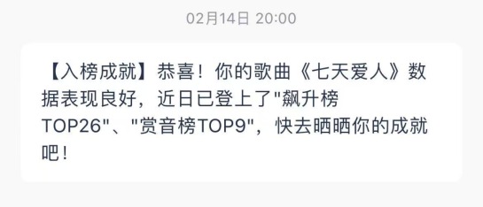 这首《七天爱人》发布在网易云音乐后带来的流量超乎他的想象。自2月11日-17日0时,该歌曲的有效播放量为18.6万,收藏量达9555,评论量为1769。而这首歌曲也为他带来了日均150元的收益。