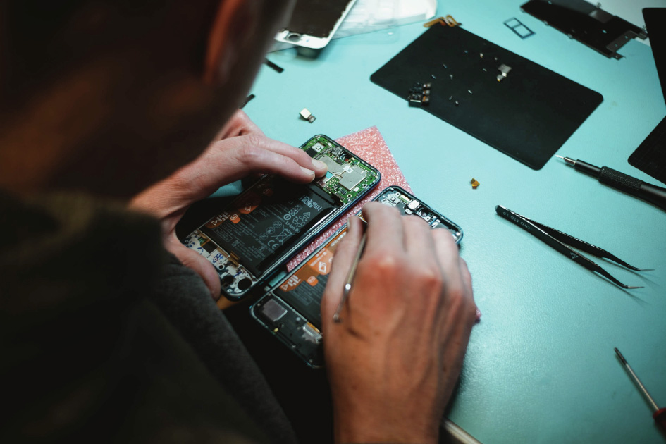图2 由于制造商在最新设备中采用胶水而非机械紧固件,独立维修人员维修智能手机的难度越来越高。来源:Kilian Seiler on Unsplash (publicdomain)