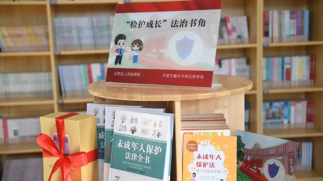 为更好传播法治文化,深化检校合作,红桥区检察院专门在耀华中学红桥学校图书馆设立“检护成长”法治书角,这是红桥区检察院设立的首个校园法治图书角,也是红桥区检察院的普法新阵地,旨在潜移默化培养未成年人学法、懂法、守法、用法的意识和习惯,增强未成年人法律意识和自我保护能力。
