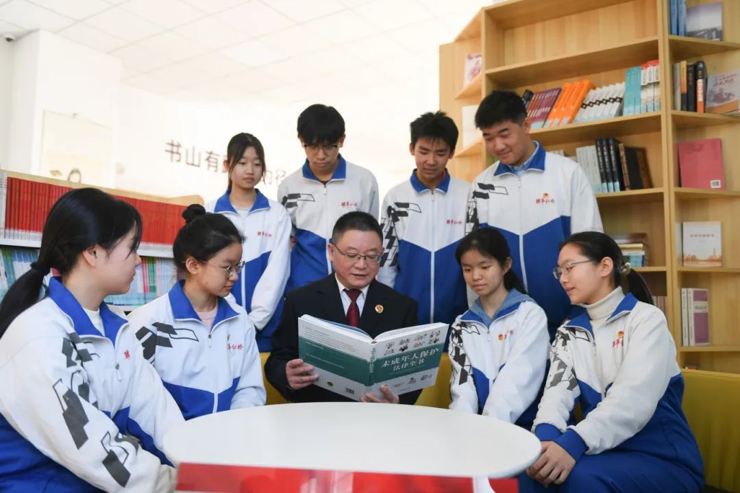 法治书角揭牌仪式上,周铁震副检察长与汪新华书记、刘学宇校长共同揭牌,并向学校捐赠了《未成年人保护法律全书》等一系列书籍。在图书选择上,红桥区检察院根据未成年人的年龄、生理、心理特点和接受能力,精心挑选适合高中学生阅读的书籍,内容丰富,覆盖法律、教育、科普、古典名著、红色经典等。揭牌仪式后,周铁震副检察长与学生代表共同学习了《未成年人保护法》的相关内容,鼓励同学们认真学习、自觉守法,扣好人生第一粒法治纽扣。