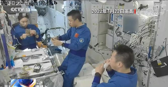 今天的新闻中的一件大事儿就是我们的问天实验舱任务组织完成了发射前的系统间全区合练,这也意味着各项准备工作已经妥当,就待择机发射。而从地面到太空,从6月5号神舟十四号发射成功算起,我们的三名航天员也已经在轨工作生活了47天。今天节目开始,我们先来看看他们今天的生活片段,看看他们都在忙些什么。