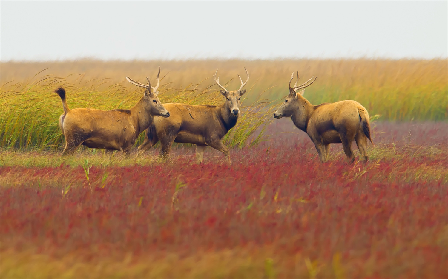 麋鹿以青草和水草为主食,尤其喜爱食用嫩草和水生植物。其栖息环境主要是温暖湿润的沼泽、湿地。这些区域气候适宜、植被丰富,为其提供了充足的食物和隐蔽的场所。