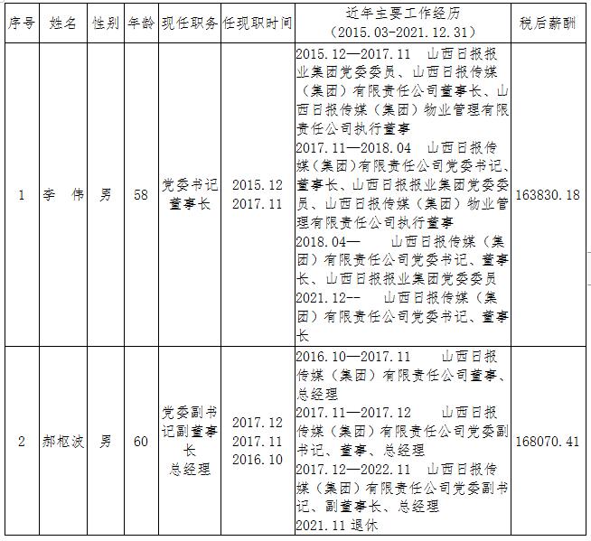 备注:集团领导班子成员2021年度薪酬为实际发放金额,于2022年1月兑现2021年应发任期薪30%。