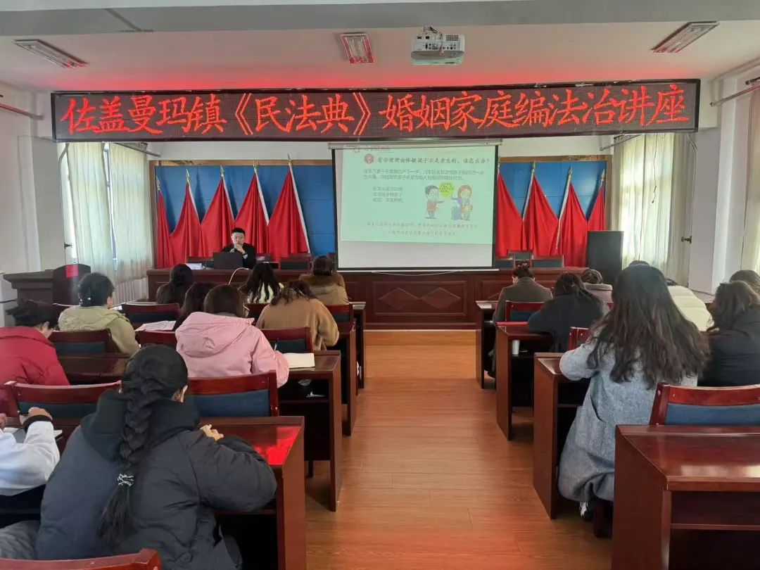 佐盖曼玛司法所特邀“1+1”法律援助志愿律师边疆,为佐盖曼玛镇机关女干部带来了一场法治讲座,为妇女撑起法治“保护伞”。讲座中,边疆律师结合自身丰富的办案经验和实际案例讲解了《中华人民共和国民法典》婚姻家庭编中相关的法律条文,对夫妻共同债务的认定、离婚时子女抚养权的归属、离婚损害赔偿制度、家庭暴力的预防和处置等进行重点解读,使女干部对相关法律知识有了更深刻的理解。讲座结束后,边疆律师还与女干部们进行了交流互动,耐心解答了她们在生活中遇到的法律问题,并提供了专业的法律建议。