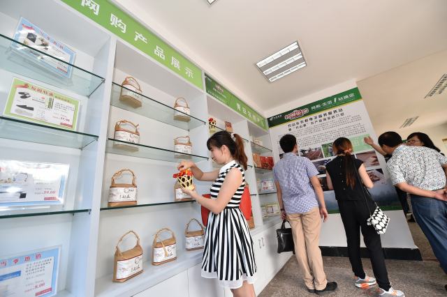 游客在青田县方山乡农村电子商务服务站内参观(9月18日摄)。