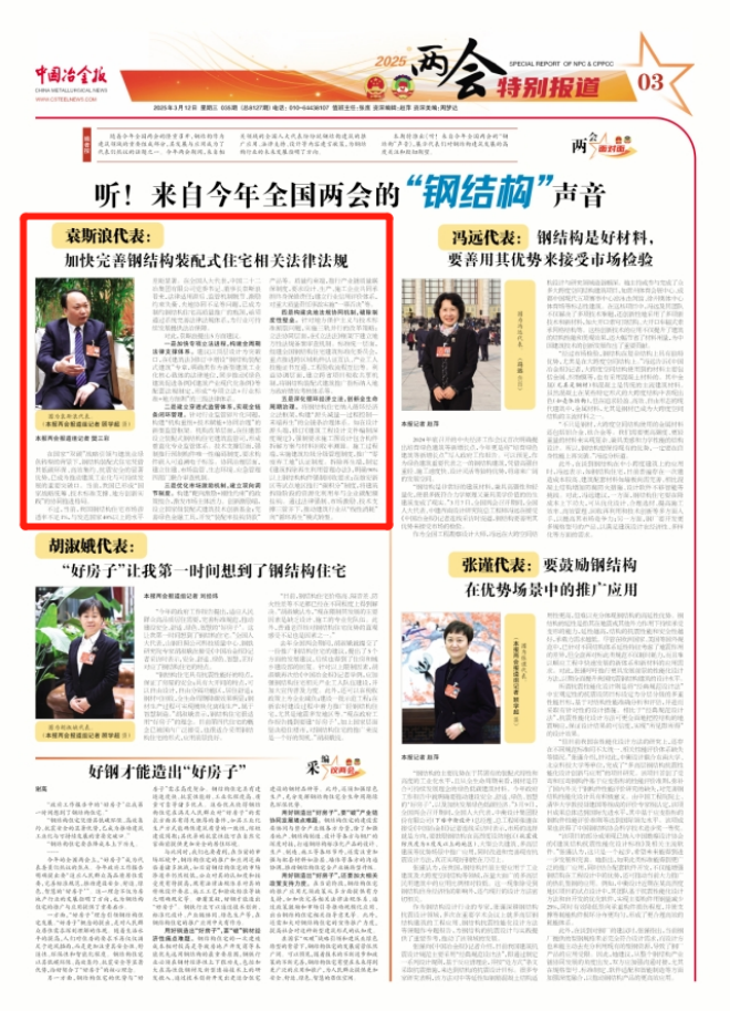袁斯浪代表:加快完善钢结构装配式住宅相关法律法规