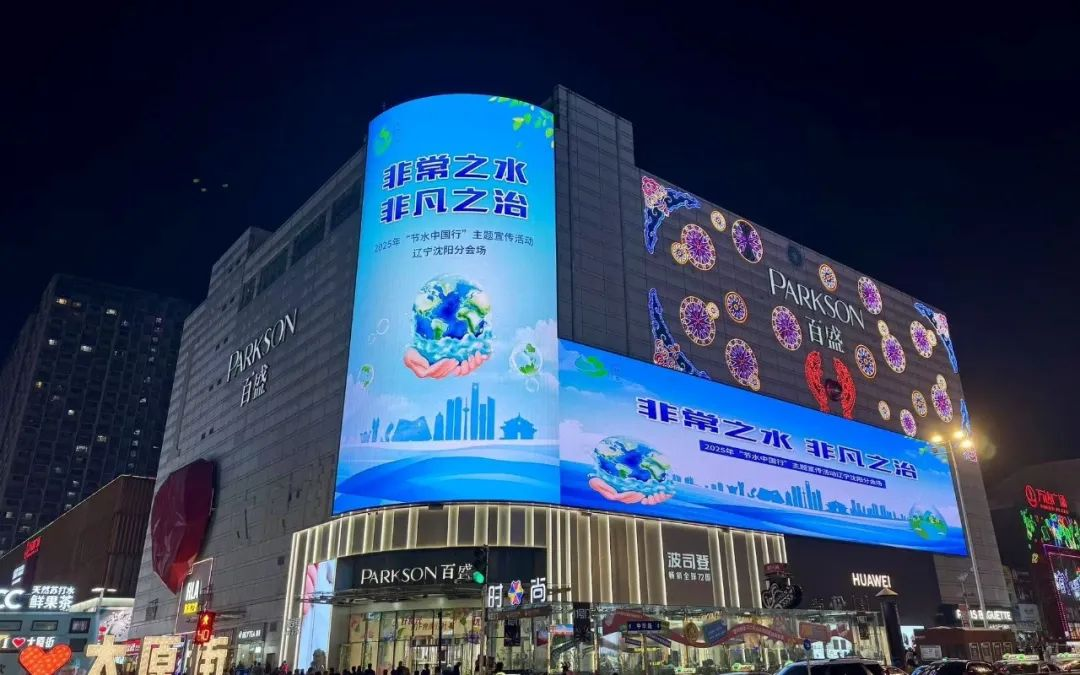 沈阳中街、太原街、天街商圈灯火辉煌,节水标语在商业氛围中传递节水信息;大连周水子国际机场、国际会议中心的大屏上,节水宣传语随着人潮涌动,提醒往来旅客珍惜水资源;鞍山千山风景区内,灯光与自然景观相互映衬,让节水理念融入如画美景;本溪环球商场、营口大商新玛特、辽阳万达广场等地,“水润辽兴 节水同行”“非常之水 非凡之治”“推动水利高质量发展,保障我国水安全”等宣传标语格外醒目,吸引众多市民驻足观看,引发强烈反响。