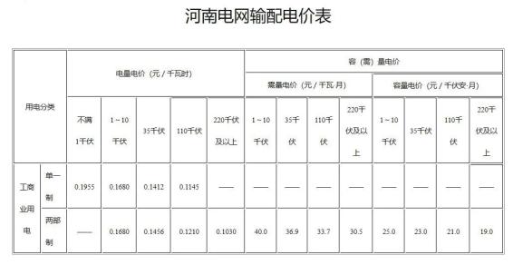 附件:1.河南电网输配电价表