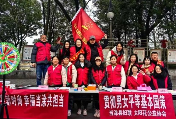 当涂县妇联联合太阳花公益协会的巾帼志愿者在行陈社区志愿广场设立宣传台,通过发放宣传册、法律宣讲等方式,向过往群众宣传法律知识,普及男女平等基本国策,引导广大妇女尊法、守法、学法、用法。