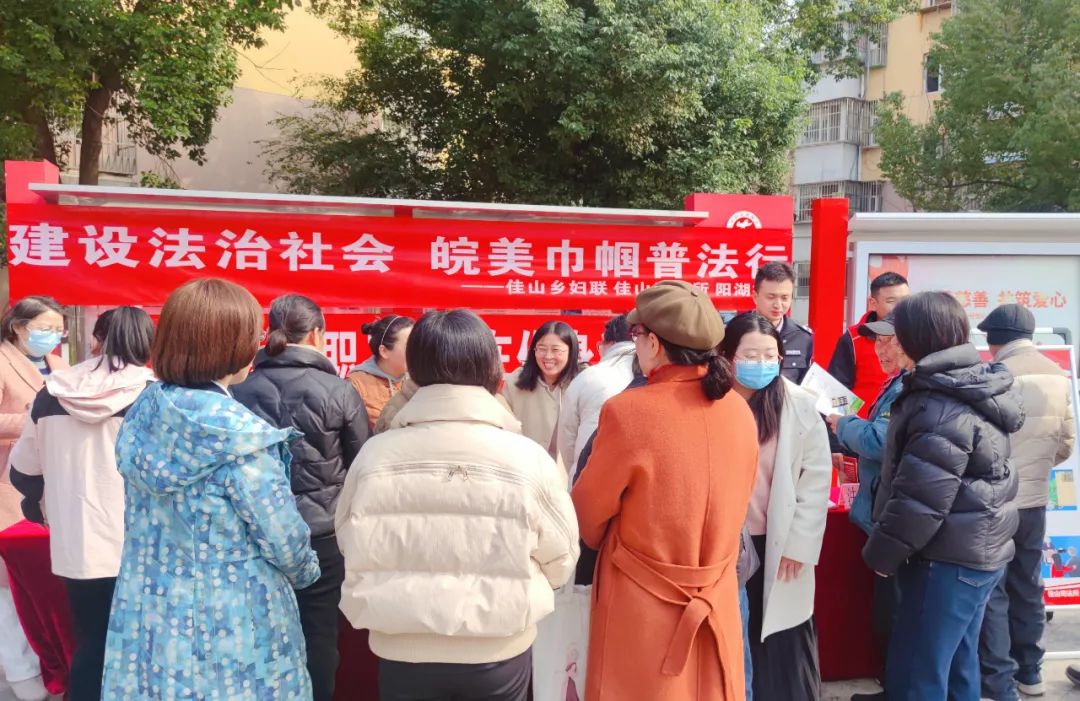 佳山乡妇联、佳山司法所、阳湖社区联合开展“建设法治社会•晥美巾帼普法行”维权活动。