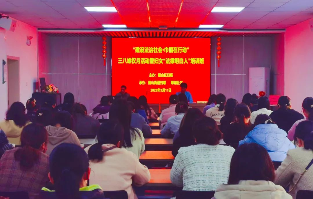 雨山区妇联在翠湖社区举办“建设法治社会•巾帼在行动”三八维权月活动暨妇女“法律明白人”培训班。马鞍山市夏商周律师事务所张有杰律师作《贯彻落实男女平等基本国策 切实维护妇女儿童合法权益》辅导讲座。