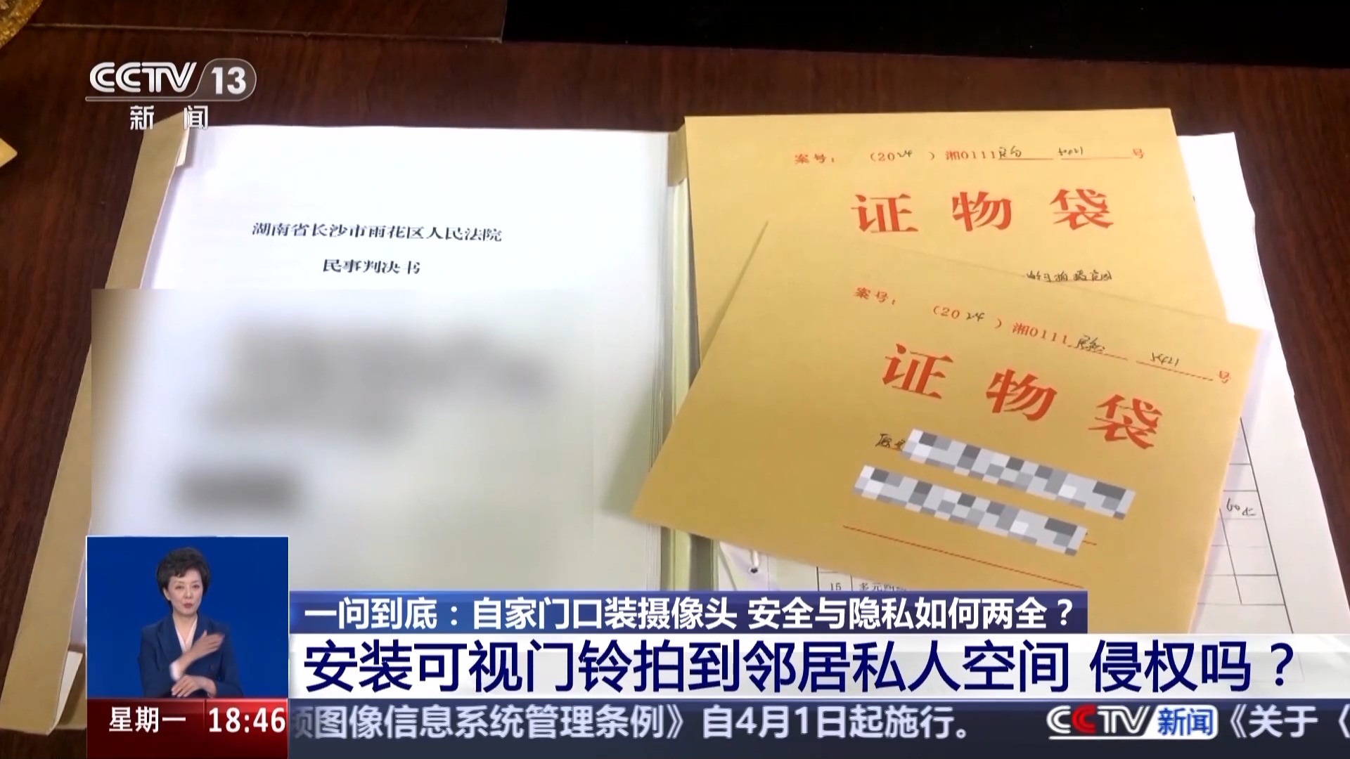 湖南省长沙市雨花区人民法院民事审判一庭庭长 张松杰:如果对方不同意的情况下,调整摄像头安装的位置,使这个摄像头尽量只采集到我们自己家人的出行信息。比如说录音的功能,晚上夜间红外线的功能尽量关闭。不能侵害到相关利害关系人的隐私信息,包括出行、会客、时间、日期、声音等等,我认为边界判断的原则在这里,不能侵犯到采集到他人的隐私信息即可。