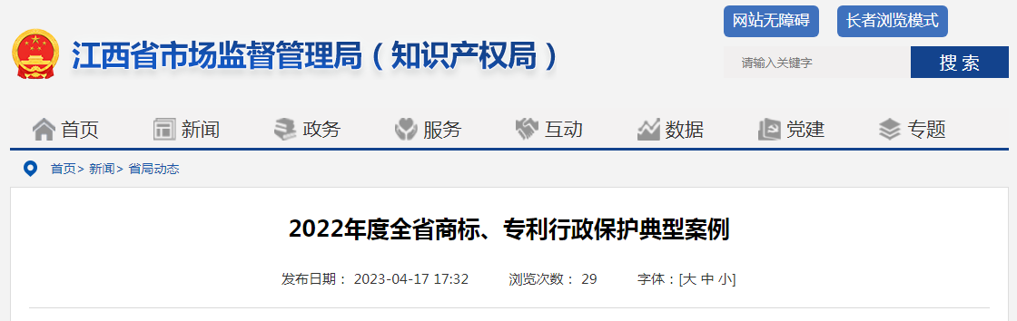 江西公布2022年度全省商标、专利行政保护典型案例