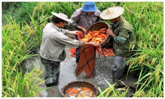 为了让更多村民依托稻鱼共生在家门口致富,多年来,青田建立农业文化遗产保护与发展的多方参与机制,对全县稻鱼共生产品实行“五统一”产供销模式,让稻鱼米每斤价格跃升10元以上,形成了“一亩田、百斤鱼、千斤稻、万元钱”的共富产业。
