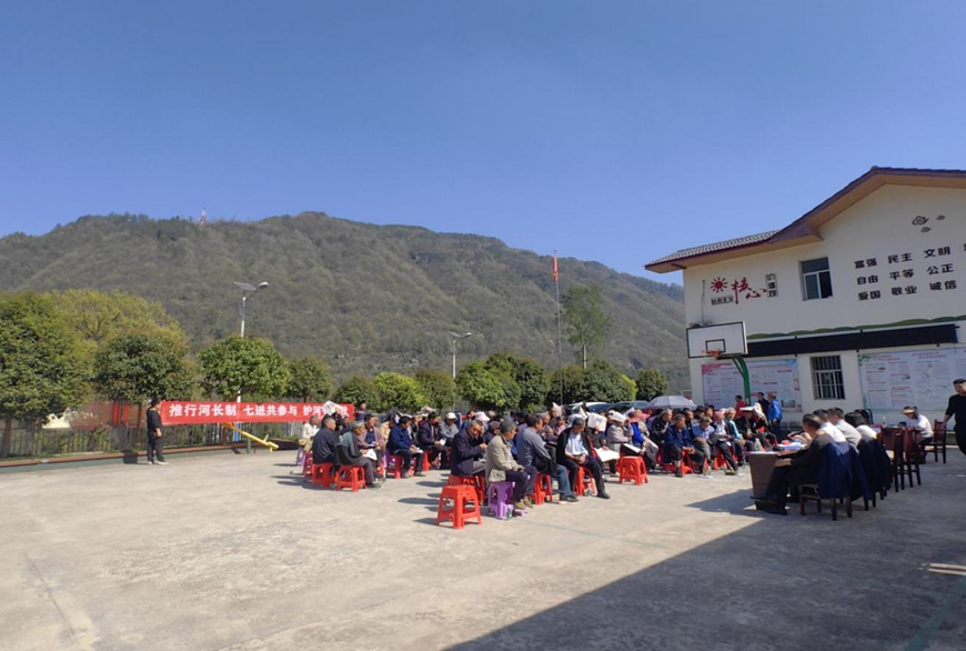 近日,通江烟溪镇在烟溪沟村组织召开河湖长制“七进”进乡村宣传活动。