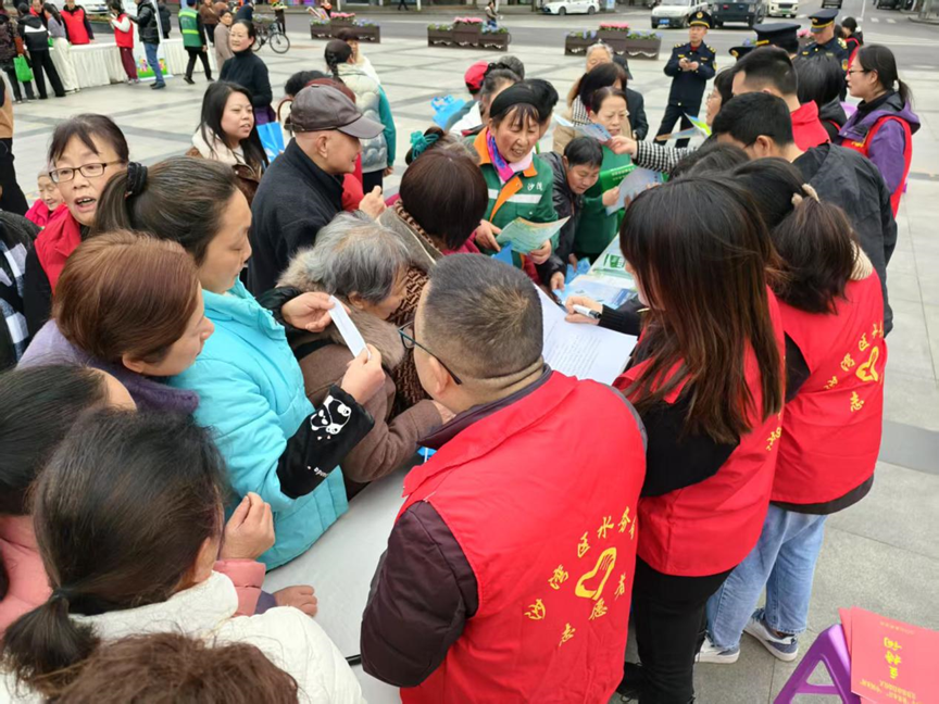 3月31日,阆中市江南街道河长制办公室在金水湾广场开展以“共护碧水清流,共建美丽家园”为主题的河湖长制“七进”进社区宣传活动。