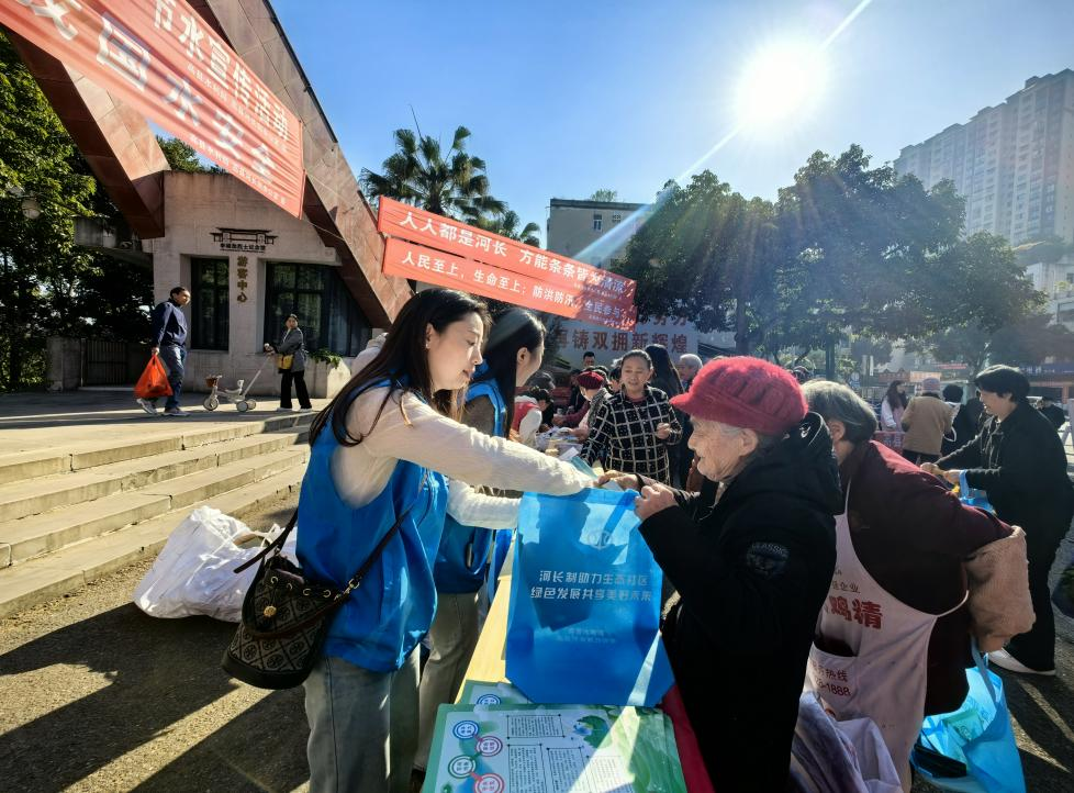 在符江社区活动现场,工作人员通过悬挂标语横幅、发放宣传资料和环保购物袋、现场接受咨询等方式,向群众大力宣传《四川省河湖长制条例》《四川省节约用水办法》《四川省水资源管理条例》等法律法规,呼吁大家从自身做起,抵制和纠正破坏河湖生态行为,共同守护美丽幸福河湖。活动共计发放宣传手册1600余份。