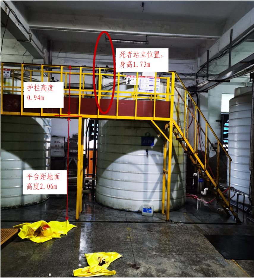 (四)事故现场情况 1.事故位置情况事故发生地点位于大亚湾开发区澳头街道惠州市加泽科技有限公司(见图1)尿素混合车间操作平台(见图2)。