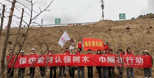 偏关县妇联参加“黄河长城握手处 我在偏关有棵树”保护黄河认领树木志愿活动