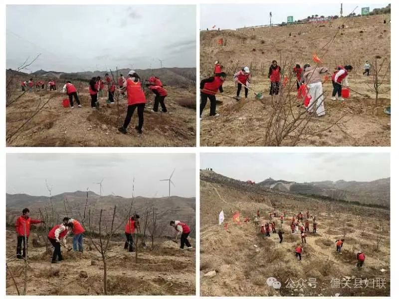 在市、县妇联领导的带头下,志愿者们扛苗扶株、挥锹铲土、培实新土、提水浇灌,每道工序衔接有序,现场一片热火朝天的景象。在大家共同努力下,新栽海红果树苗迎风挺立,为偏关高质量发展增添了一抹盎然绿意。