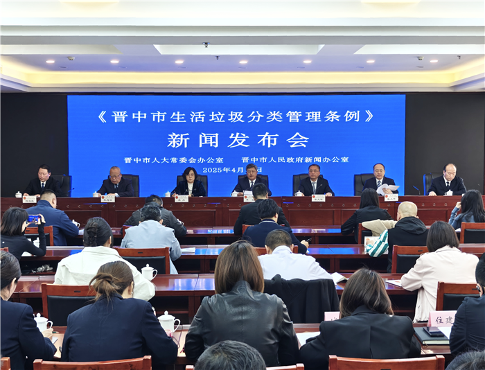 2025年4月16日(星期三)上午10时30分,晋中市人大常委会办公室、晋中市人民政府新闻办公室举行《晋中市生活垃圾分类管理条例》新闻发布会,晋中市人大常委会副主任李军出席并介绍情况,晋中市人大常委会秘书长张文军主持,晋中市人大法制委员会主任委员、常委会法工委主任吴丹,晋中市城市管理局副局长张小平,晋中市农业农村局副局长张志勇,晋中市生态环境局四级调研员张旭峰,晋中市商务局三级调研员游海波出席并答记者问。