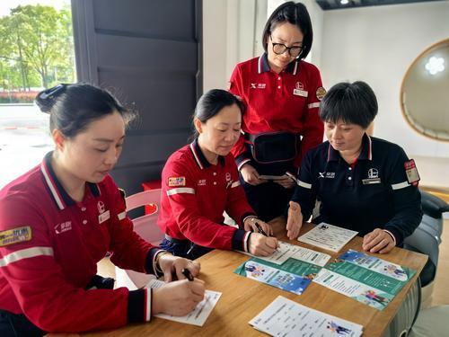 上海石油编制下发内容丰富、通俗易懂的健康管理应知应会宣传折页,普及健康管理核心知识,强化员工体重管理意识。图为加能站员工填写体重管理观察卡,建立健康档案数据库。王洁华摄